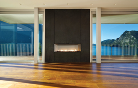 - Matte black fireplace interior (porcelain linear available as accessory)