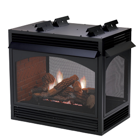 - Choose direct-vent fireplace (35,000 Btu), vent-free fireplace (38,000 Btu), or vent-free firebox