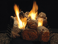 Rugged Refractory Logs give the Rock Creek Log Set a rustic look on a grand scale.